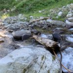 Once you are a bit over halfway up, the forest yields to alpine meadows and the trail re-approaches Spar Creek, which at this elevation is still graced with massive snow banks, even in July. The vista opens up fantastically, whether that’s uphill along tumbling Spar Creek framed with wildflowers, the massive granite flank of Spar Peak, or the distant mouth of Spar Creek and the Cabinet Mountains beyond. The trail is more overgrown here, too, and there are a few tributaries to cross, none of which will cause wet boots.