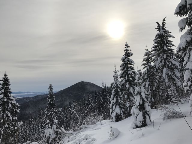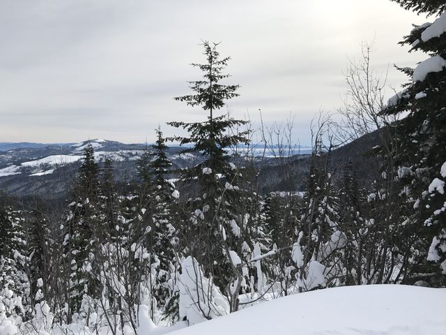 Since this is a counterclockwise perimeter loop, the choice of trail is simply the one to the right. Thus, start out on the Valley View trail above the Selkirk Lodge (that’s the one to the right :)). The trail weaves through a forested area with a clearing halfway down and nice views across the Spokane valley. Continue on to Junction #1 and take the Larch trail. This trail moves through dense forest, and many times is covered with needles and small branches, especially following stormy days. It also tends to be more icy than other trails. Towards the end of the trail it swerves sharply left and steeply uphill to Junction #2.