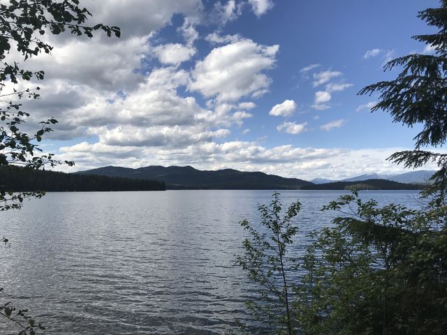 Once you cross back to the lake side, the views couldn’t get better. The trail runs right in front of (as in, the backyard of) dozens of summer homes, with the shrubbery trimmed and catered for excellent views across the lake and the Selkirk Mountains. It’s about 5 miles back to Outlet Campground. Ubiquitous little bistro tables, strategically placed right on the lake’s shore in front of each home, sure are tempting to stop and while away the day with a cold drink. But you know us. We’d rather hike.