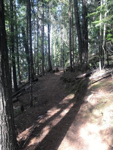 The Beach Trail extends from Outlet Bay to Kalispell Bay along Priest Lake’s western shore. It traces the lake’s shore closely, running in front of many summer homes and presenting fabulous views across the lake. The Woodrat trail, a neat mountain biking path through the woods, completes the loop.