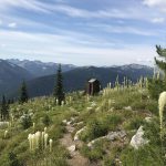 TrailheadThe trail starts out as a double-track, but later morphs into a single-trackThe beargrass-lined trail continues uphill at a steady incline, following the spine of the ridgeFork to the spring below Shorty PeakBeargrass meadowLookout towerThe last bit is a bit steeperLone Tree Peak. It appears to have lost some of its lonelinessView south towards the Parker Ridge, Long Canyon, and Smith Creek. The hump in the front to the right is Red TopRed Top in front, much of the American Selkirks in the backgroundView east with the Purcells in the backgroundPrivy, with Red Top behind it and Joe Peak to the rightMeadow near the springSpringCouldn’t find the obligatory carcass, so we’re switching to the obligatory grouse
